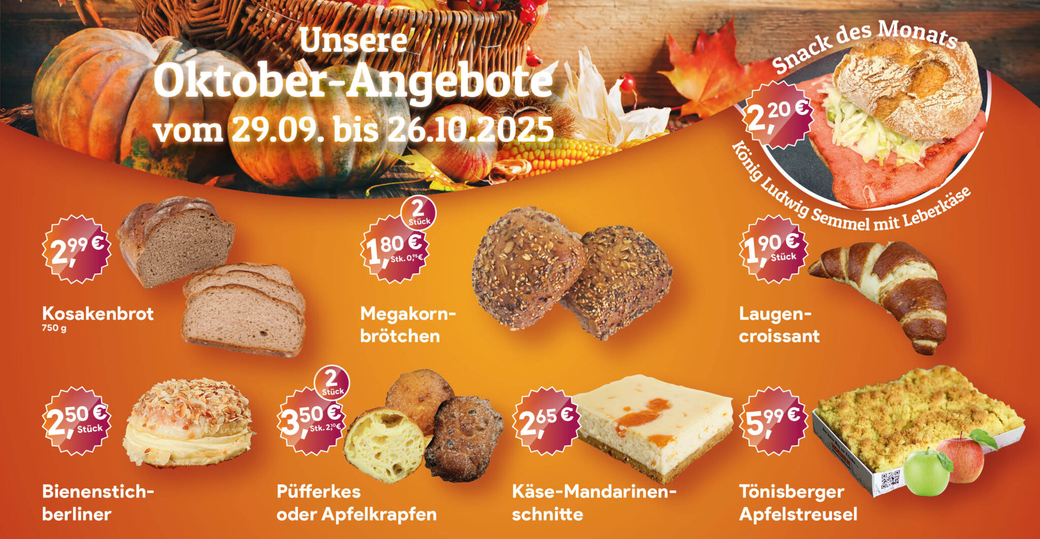 Von Brötchen bis Brot, von Snacks bis Kuchen.